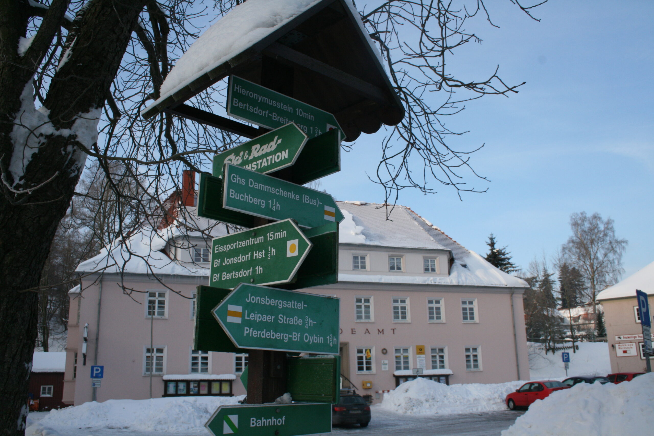 Zahlreiche Skiwanderwege kreuzen sich vom Ski-Wanderkreuz „Am Stern“ zwischen Jonsdorf und Oybin-Hain. Parken können Sie hier bequem und dann kann’s auch schon losgehen: Auf die Bretter fertig los!